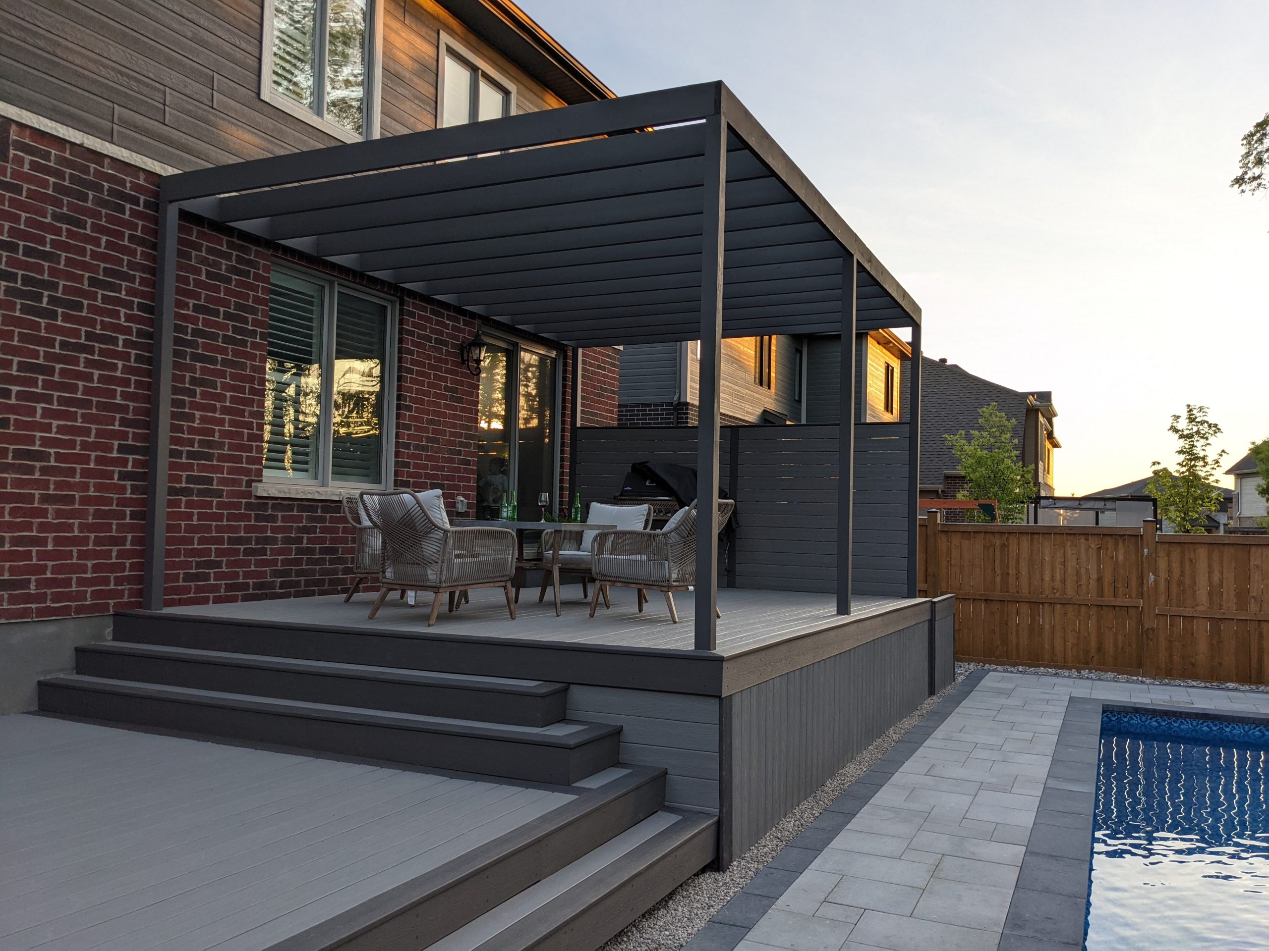 Similar projects Poolside IPE Deck Planters in Kanata Fortress Black Rail with Cedar Drinkrail in Westborough Cabana Latte with Fortress Glass in Barhaven